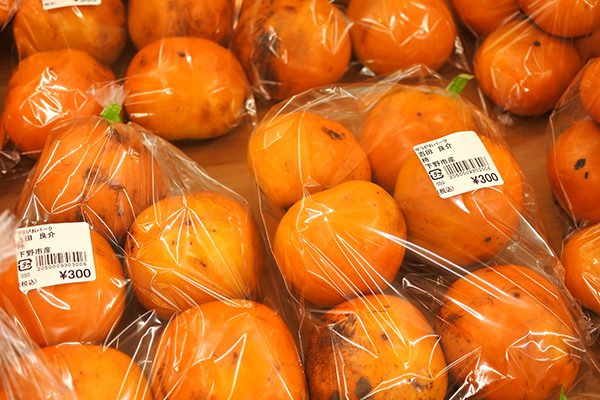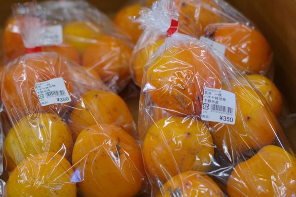 長楕円な形をしたハチヤ柿。干し柿もいいですね〜**