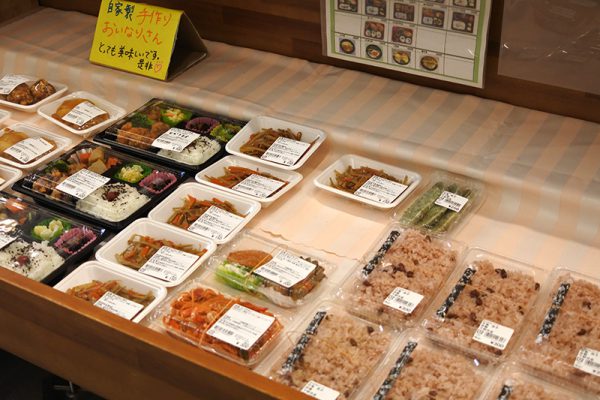 お昼時には様々なお惣菜が勢ぞろいです。
