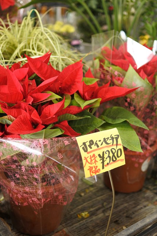 クリスマスということで、外のお花コーナーにはこちらのお花