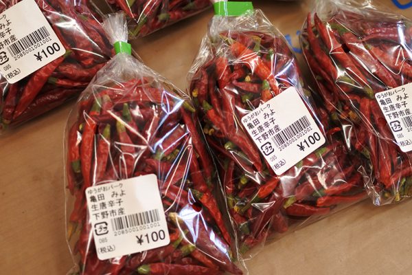 真っ赤な色合いが綺麗な唐辛子も販売中ですので