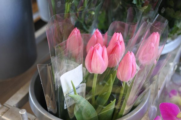 外のお花コーナーには少しずつ春の気配♪
