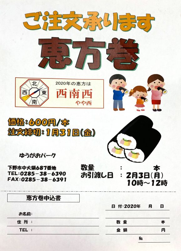 恵方巻きのご予約は明日までとなっております!