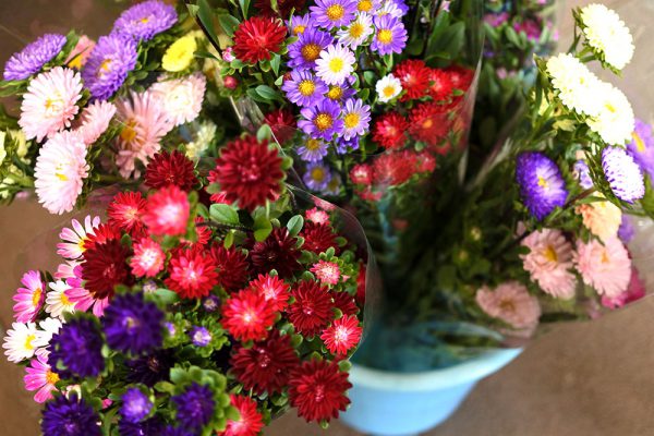 暖色系の色が素敵な切り花。💐