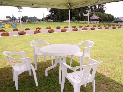 ゆうがおパークでは、食材はもちろん、バーベキューコンロからトングなどの